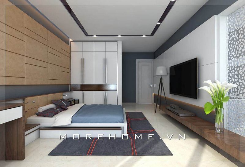 Thiết kế phòng ngủ hiện đại với giường ngủ đơn gọn gàng và tủ âm tường tiện lợi là lựa chọn hoàn hảo cho không gian căn hộ chung cư nhỏ.