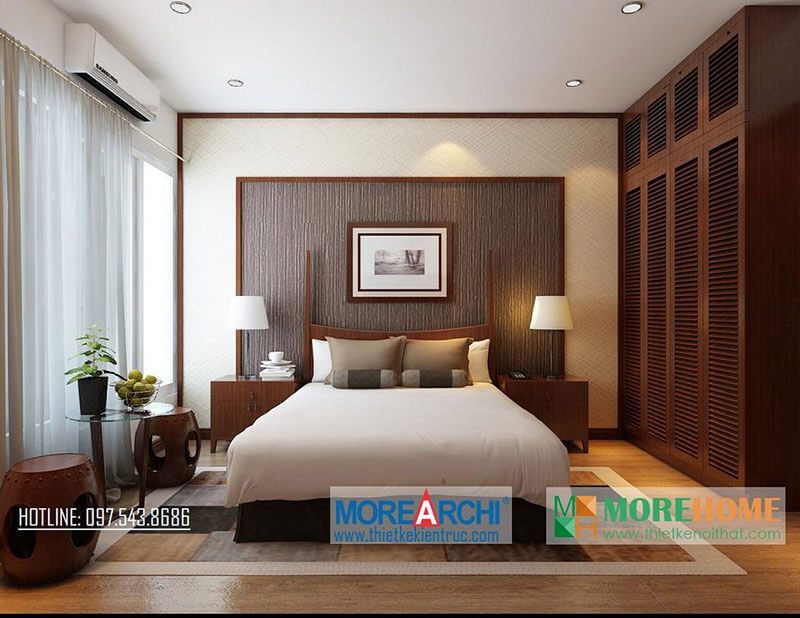 Diện tích phòng ngủ được cải tiện nhưng vẫn đảm bảo được công năng khi thiết kế tủ quần áo âm tường cửa trượt gỗ hiện đại