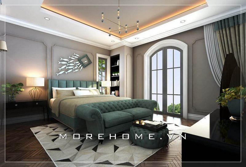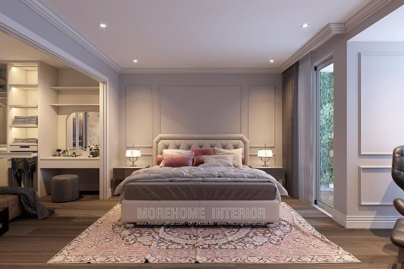 Thiết kế giường ngủ biệt thự đẹp phong cách tân cổ điển