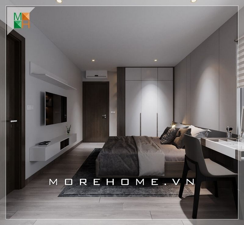 Bố trí phòng ngủ của master độc đáo, sang trọng với nội thất gỗ công nghiệp hiện đại và tiện nghi