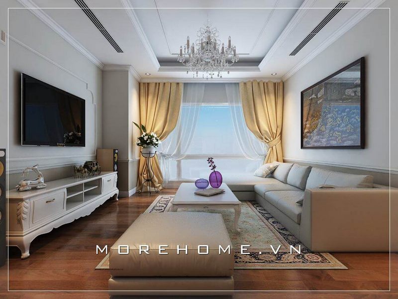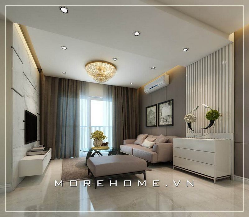 Thiết kế nội thất phòng khách hiện đại, đẹp và trẻ trung với tone màu trắng tinh tế cho nhà chung cư