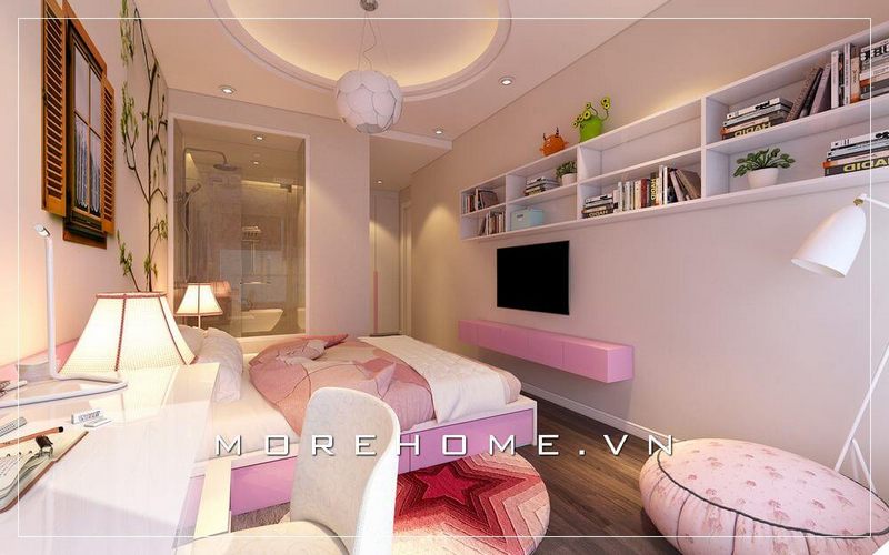 Thiết kế nội thất hiện đại cho phòng ngủ bé gái ấn tượng với gam màu hồng phấn đáng yêu tạo nét dễ thương, nhẹ nhàng và sang chảnh cho con