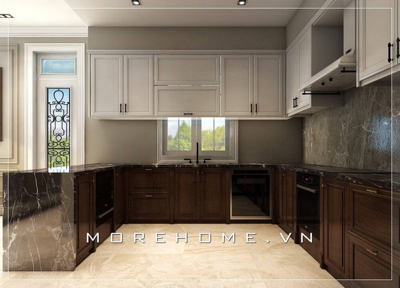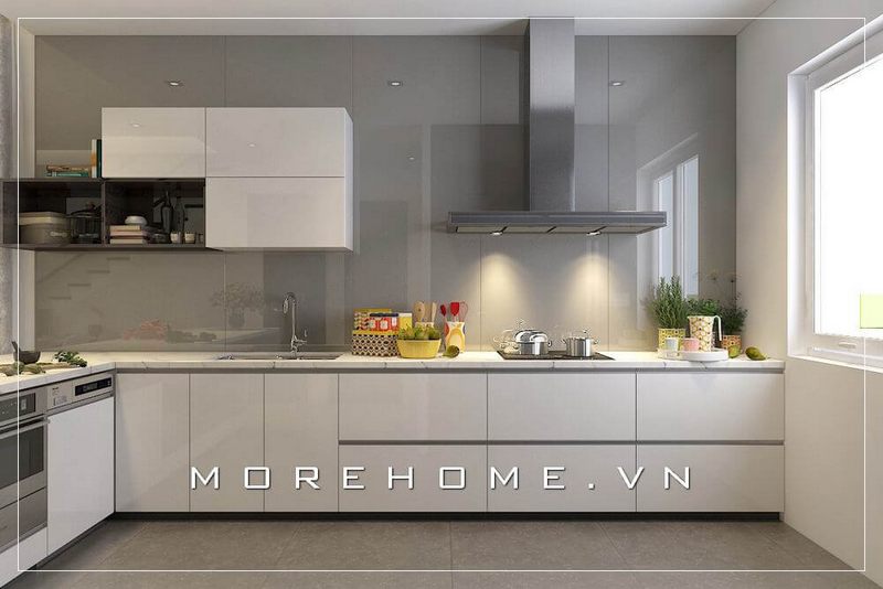 Morehome đã thực hiện hình ảnh thực tế của nội thất phòng bếp hiện đại. Nội thất bếp được làm bằng gỗ công nghiệp kết hợp với mặt đá bếp nhân tạo màu trắng cao cấp, phù hợp với các căn hộ, biệt thự, nhà phố.